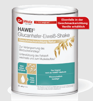 Nach der HAWEI-Methode von Dr. Keuthage entwickelt – mit skandinavischem Glucanhafer + hochwertigem Eiweiß. Zur Reduzierung des Blutzuckeranstiegs nach der Mahlzeit und dem Erhalt und der Zunahme der Muskelmasse.